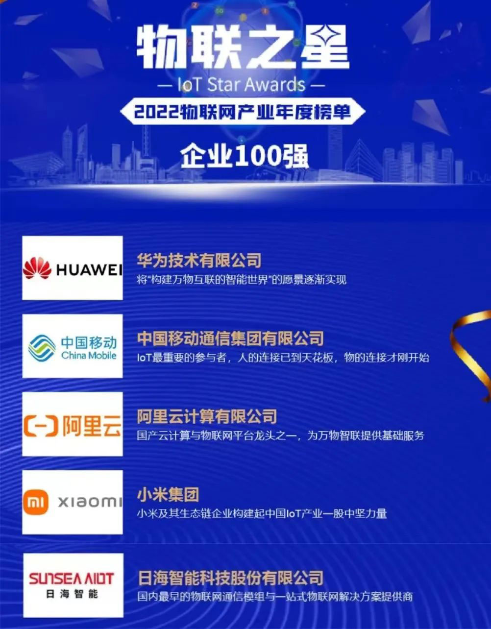 该年度榜单以公司业绩规模与人员规模较大且稳定、近三年业绩规模与净增长率表现良好、研发投入金额与占比较大并有行业影响力的新品发布、同时在物联网领域行业地位突出为四个评选标准进行严格、客观评选。飞速发展的物联网行业群雄并起,优秀企业不断涌现,米兰·(milan智能脱颖而出,与华为、中国移动、阿里云计算等知名企业齐头并进、共同成为中国物联网企业百强,背后是近三十年的实力积淀。